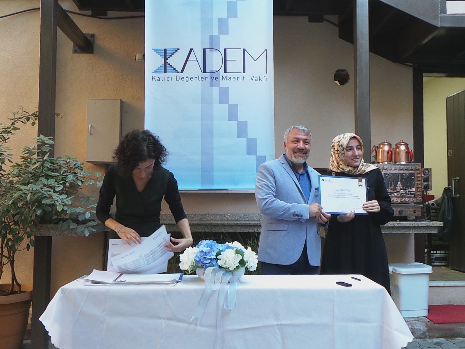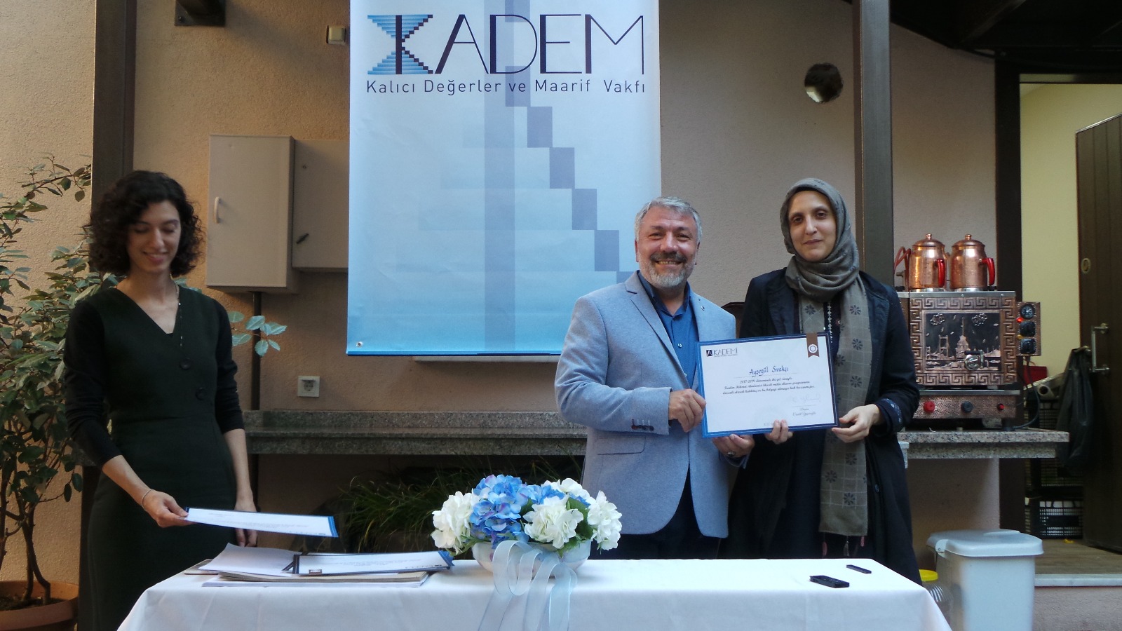 Akademimizin 2019 dönemi açılışını 30 Eylül Pazartesi günü gerçekleştirdik. Yeni dönem derslerimiz öncesinde eski ve yeni tüm öğrencilerimizle beraber bir yemek yedik. Ardından ise 2017 girişli ilk öğrencilerimiz için bir sertifika töreni düzenledik. Vakıf ve Akademi başkanımız Cevdet Yaşaroğlu'nun açılış konuşması ardından öğrencilerimize sertifikalarını takdim ettik. Akademimizin kuruluş dönemi öğrencileri olan 2017 girişli sınıfımızdan 17 mezunumuz oldu. İki senelik programı başarıyla tamamlayan öğrencilerimizi tekrar tebrik ediyoruz. Kadim Hikmet Akademisi'nin kuruluşundaki duygu ve düşünceleri aynı heyecanla taşımamıza vesile oldukları için de ayrıca teşekkür ediyoruz.